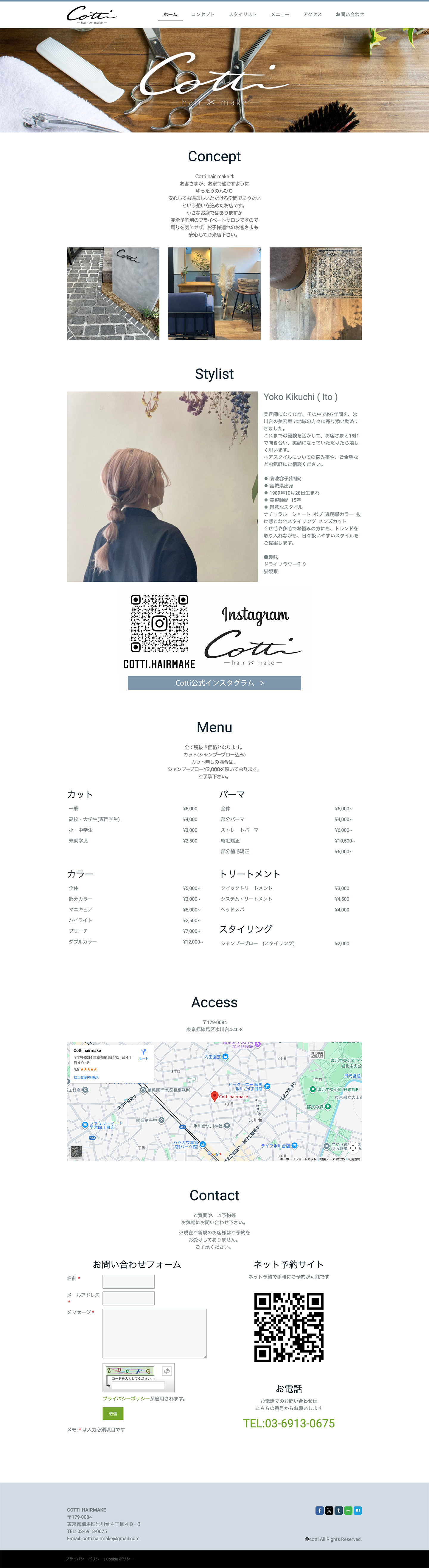 東京都練馬区氷川台の 美容室 Cotti(コッティ)様のWEBサイト構築支援を行いました。