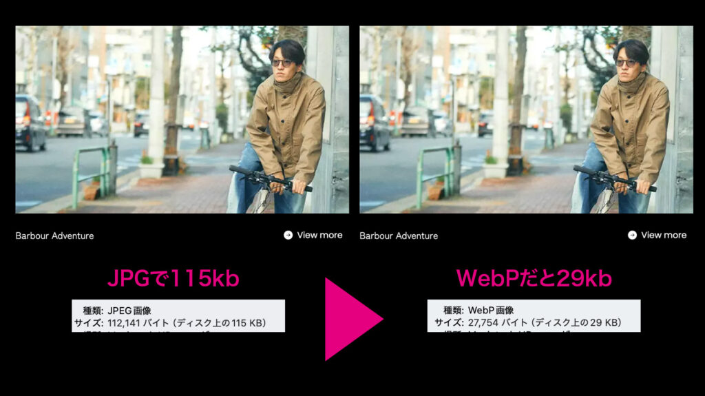 - 画像フォーマットのWebP化による容量軽減