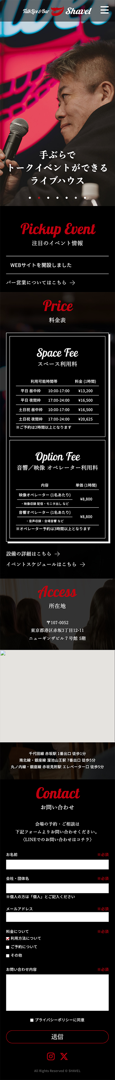 ホリエモンプロデュースTalk Live&Bar SHAVEL(シャベル)コーディングとサイト構築を担当しました。