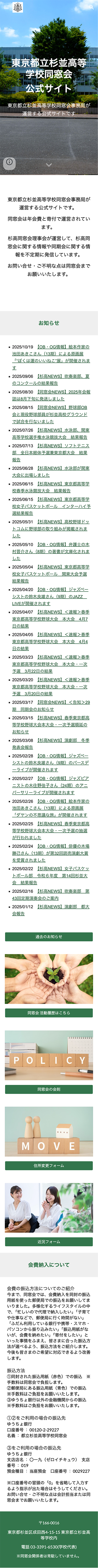 東京都杉並区 杉並高校 同窓会 公式サイト リニューアル イメージ スマホ表示