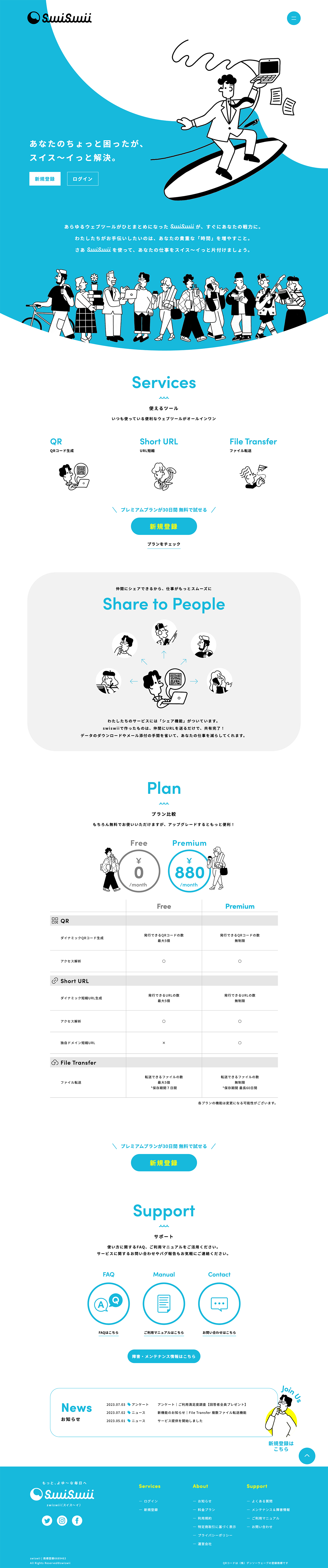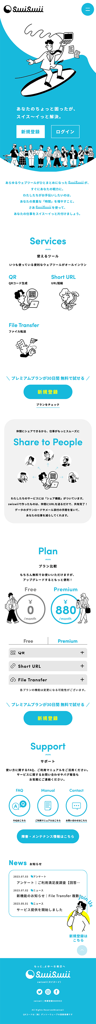 東京都渋谷区 株式会社エグミカルチャー様QR・ショートリンク・ファイルアップローダーSaaSツールswiswiiのサービスサイトのWordpress実装を担当しました。要望によりGAS連携でWEB問い合わせとスプレッドシート連携による簡易CMS機能も実装しました。